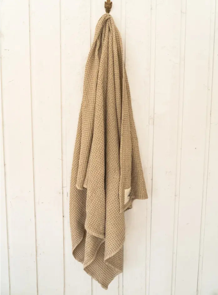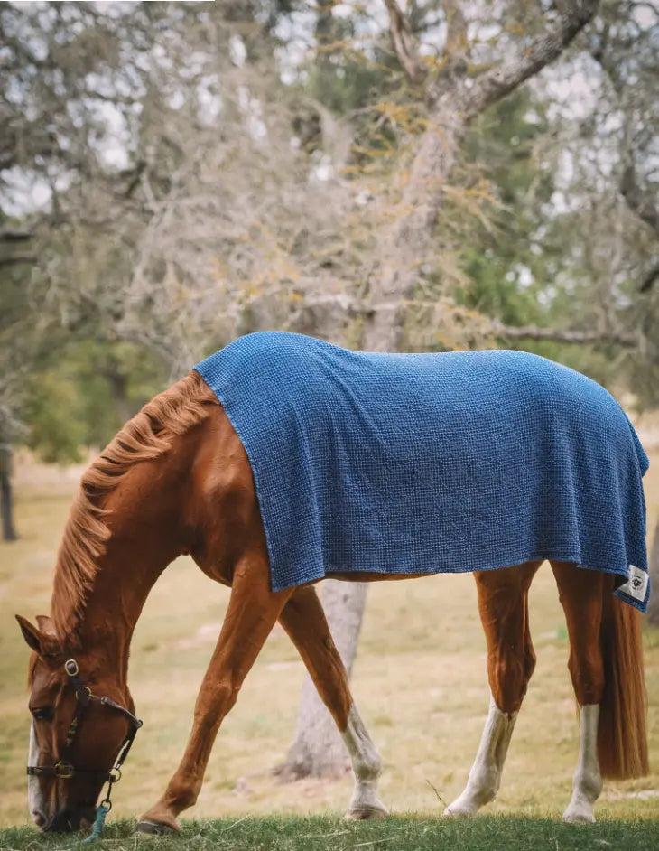 The ultimate barn essential: a larger version of the 100% cotton waffle towel. Designed for versatility, this thin blanket is perfect for drying and grooming your horse, from wiping down the body after a bath. The soft waffle texture offers superior absorption and gentle care.Ā  It is also a soft, natural, lightweight throw blanket perfect to drape on a couch, chair or bedding for an elegant touch.