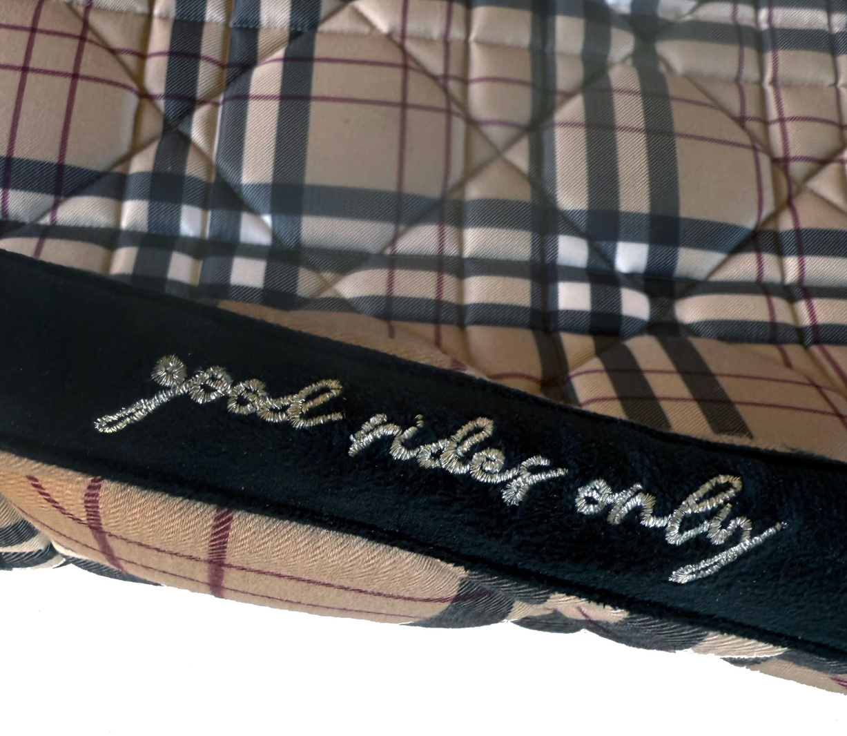 This gorgeous pattern is a nod to the classic Burberry. It's crafted for a luxury feel and superior performance, with a dirt-repelling polyester twill top that's complemented by an ultra-breathable, soft bamboo mesh underside for exceptional airflow and moisture-wicking comfort. A plush combination of cushy foam and poly fill provides excellent shock absorption, while a generous wither and spine clearance ensures optimal equine comfort. With a non-slip silicone grip, this pad stays securely in place, completing your matching Holiday Plaid ensemble with a piece that is as functional as it is beautiful. A plush combination of cushy foam and poly fill provides excellent shock absorption, while a generous wither and spine clearance ensures optimal equine comfort. With a non-slip silicone grip, this pad stays securely in place, completing your matching Holiday Plaid ensemble with a piece that is as functional as it is beautiful.