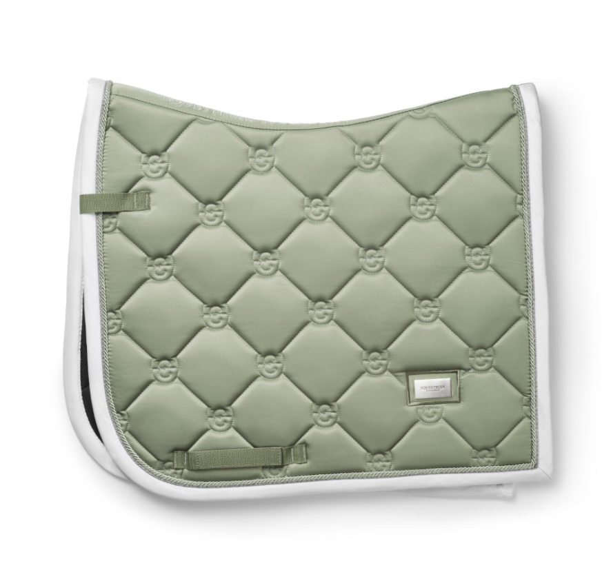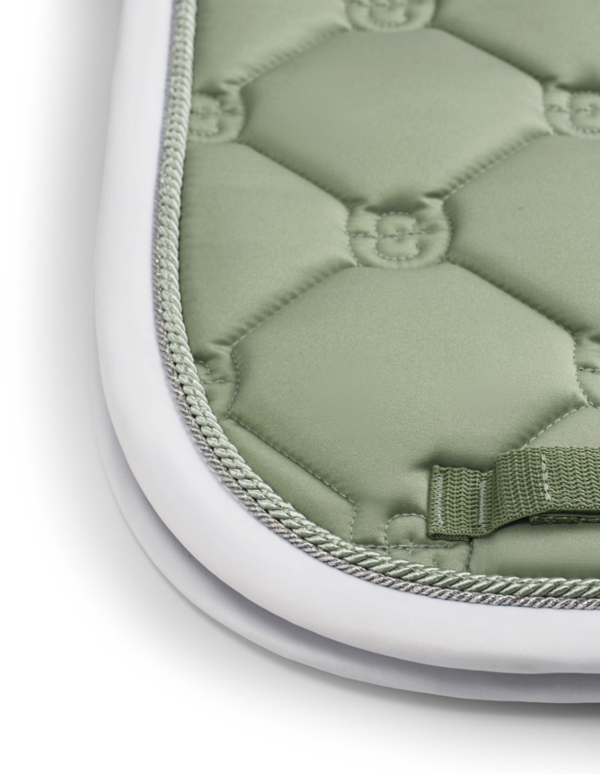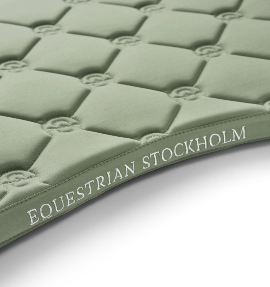 This pistachio green saddle pad in the classic quilting pattern with white and silver details. Decorated with the Equestrian Stockholm badge in silver. The material is treated with High IQ cool comfort which gives the saddle pad quick dry and moisture wicking abilities. This helps your horse stay dry and fresh longer. Style with other pieces from our Pistachio collection for a head-to-toe stylish look.