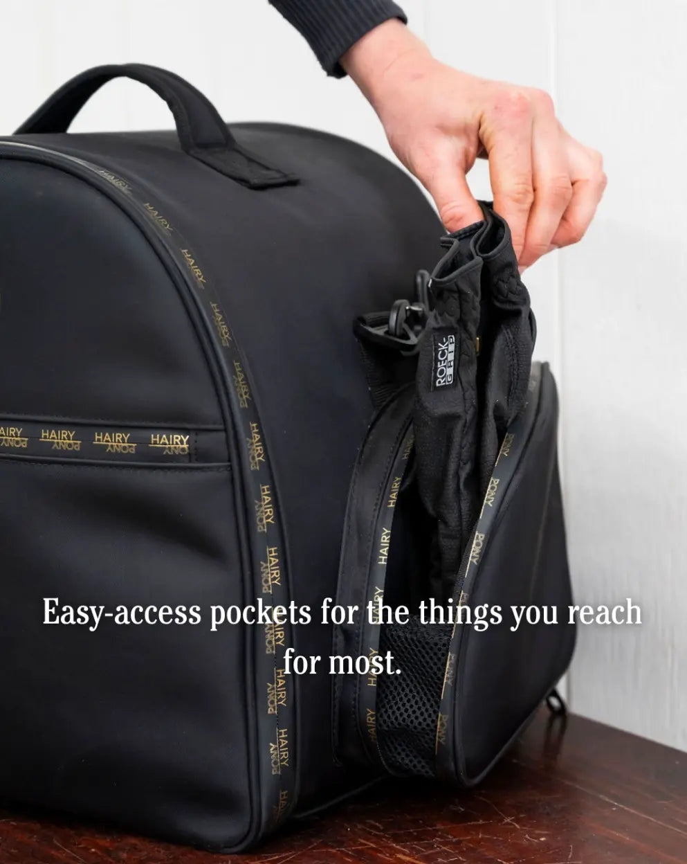 The Hairy Pony Helmet Bag offers ample room to keep your helmet, accessories, and daily essentials all in the one place — ideal for keeping things neat and tidy at home or staying organized on competition days.