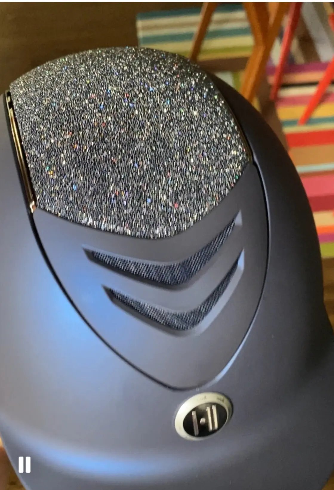 Top panel now available in Black and Navy Galaxy full caviar crystal shimmer. Choose your rail stripe color to complement (we recommend silver, black or blue)! Choose your front panel color! Reflect your style with these mix and match interchangeable parts, with so many options that you can create over 2100 different looks! Change one piece, two pieces or all three to suit your style! Match your top panel size to the current size of your One K™ CC helmet