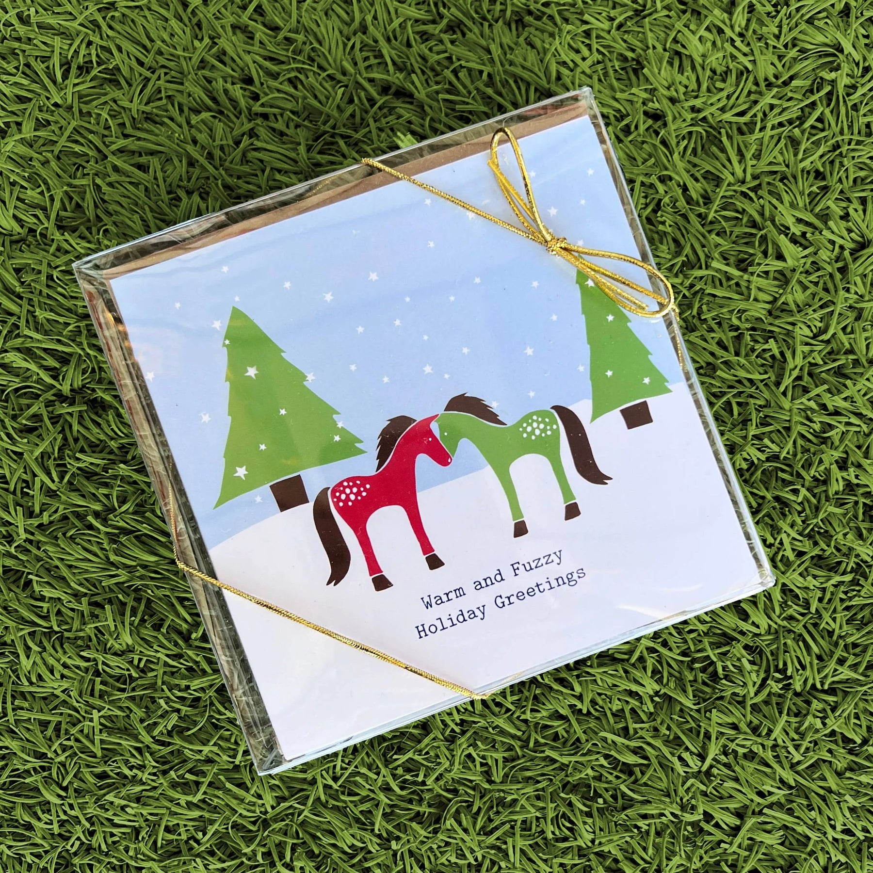 Fun graphic holiday cards "Warm and Fuzzy Holiday Greetings". Designed by Mary at Mare Modern Goods. Made in USA Pack of 10 cards and envelopes Blank inside, sized 4.75 x 4.75in