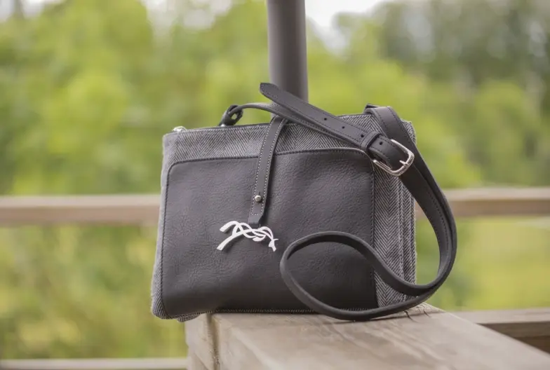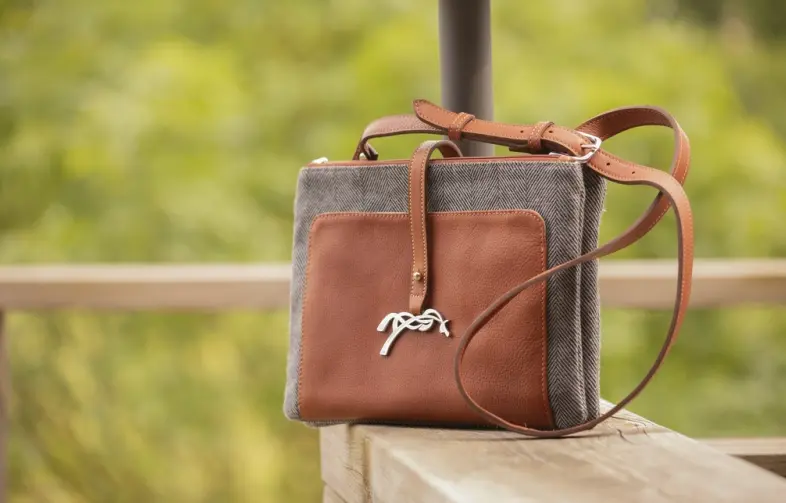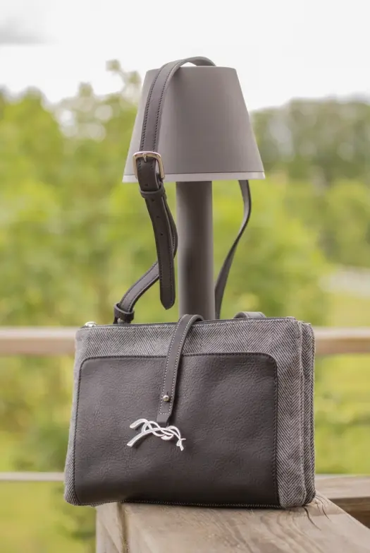 Cognac or Black color with chevron pattern wool fabric accent