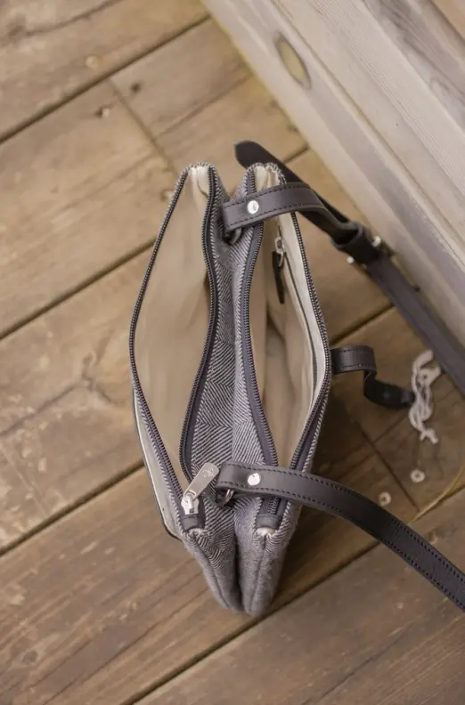 Two zippered compartments one with a smaller interior zip pocket