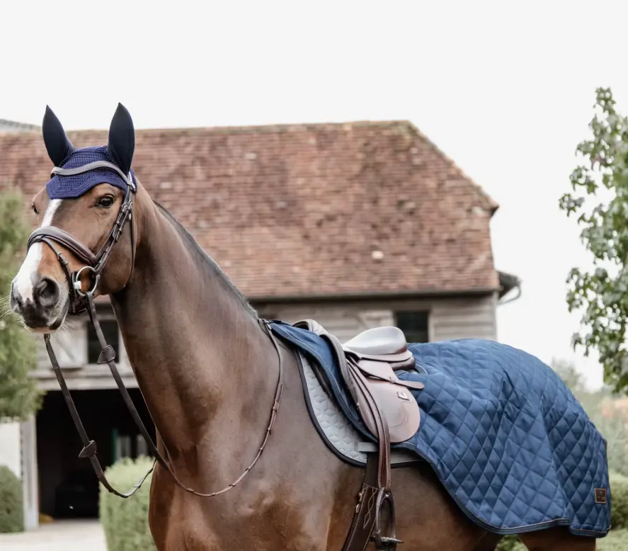 The Riding Rug has a filling of 160g and is the ideal rug for riding, warming up and cooling down when it’s cold outside. The artificial rabbit skin lining offers extra warmth because it creates tiny air pockets that retain the body heat. The lining feels very soft against the skin and polishes the horse’s coat as well as preventing rubs. The Riding Rug features a strong Velcro fastening to attach in front of the saddle, as well as a tail cord. The diamond quilting pattern, the brown artificial leather piping and the Kentucky logo in brown artificial leather give the Riding Rug a very fancy look.