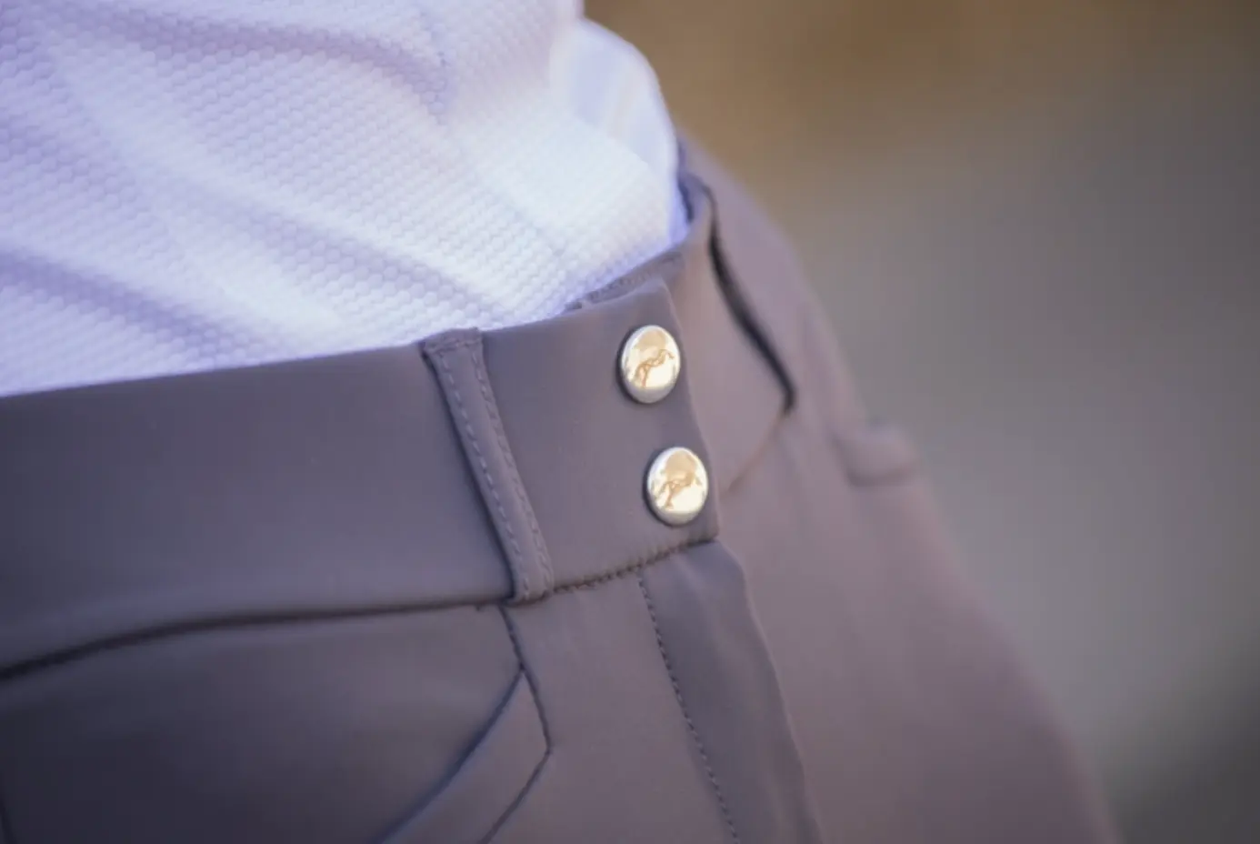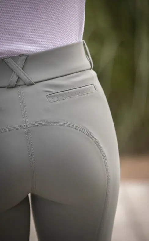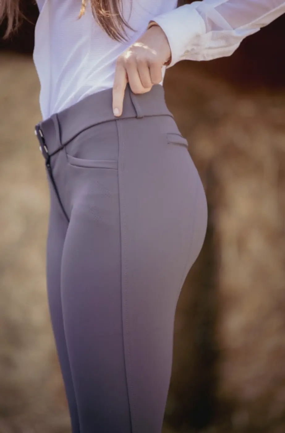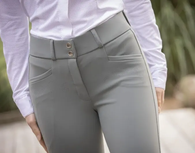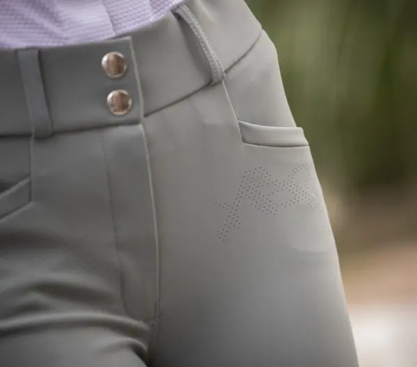 The newest in the Penelope line - the Majestic knee grip breech is an incredibly comfortable four-way stretch breech that offers a crisp, clean and modern silhouette in the saddle and beyond. With a mid-rise, wide waist band nice flat front with trimmed pockets. The back features lay flat welt pockets. This breech is engineered for performance in the saddle and light, cool comfort. It offers a close yet stretchy "second skin" fit that literally feels weightless.