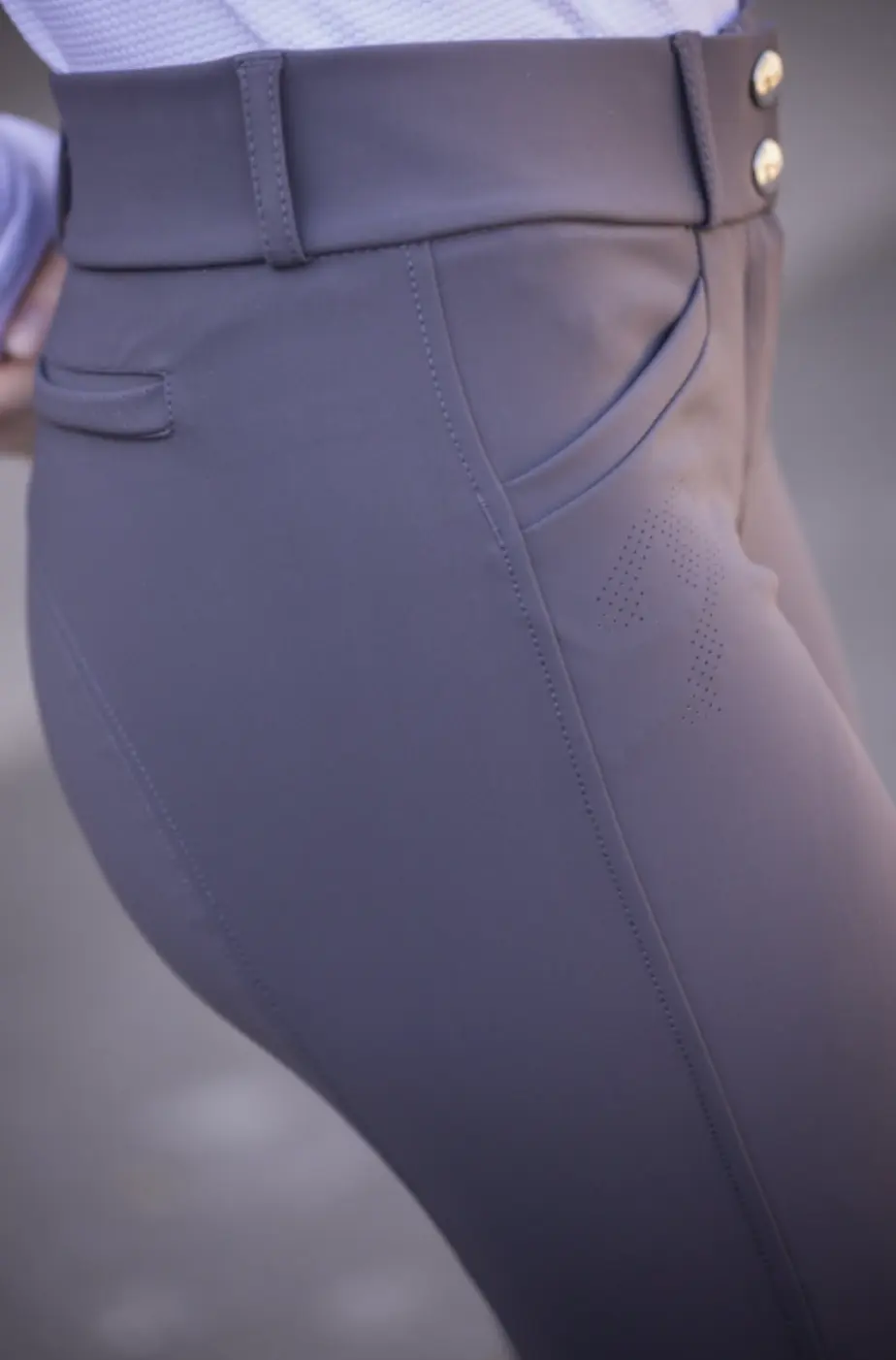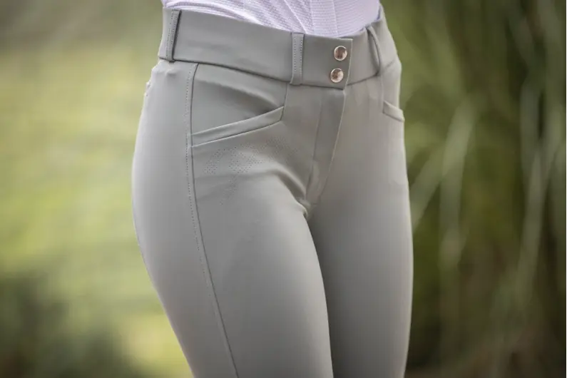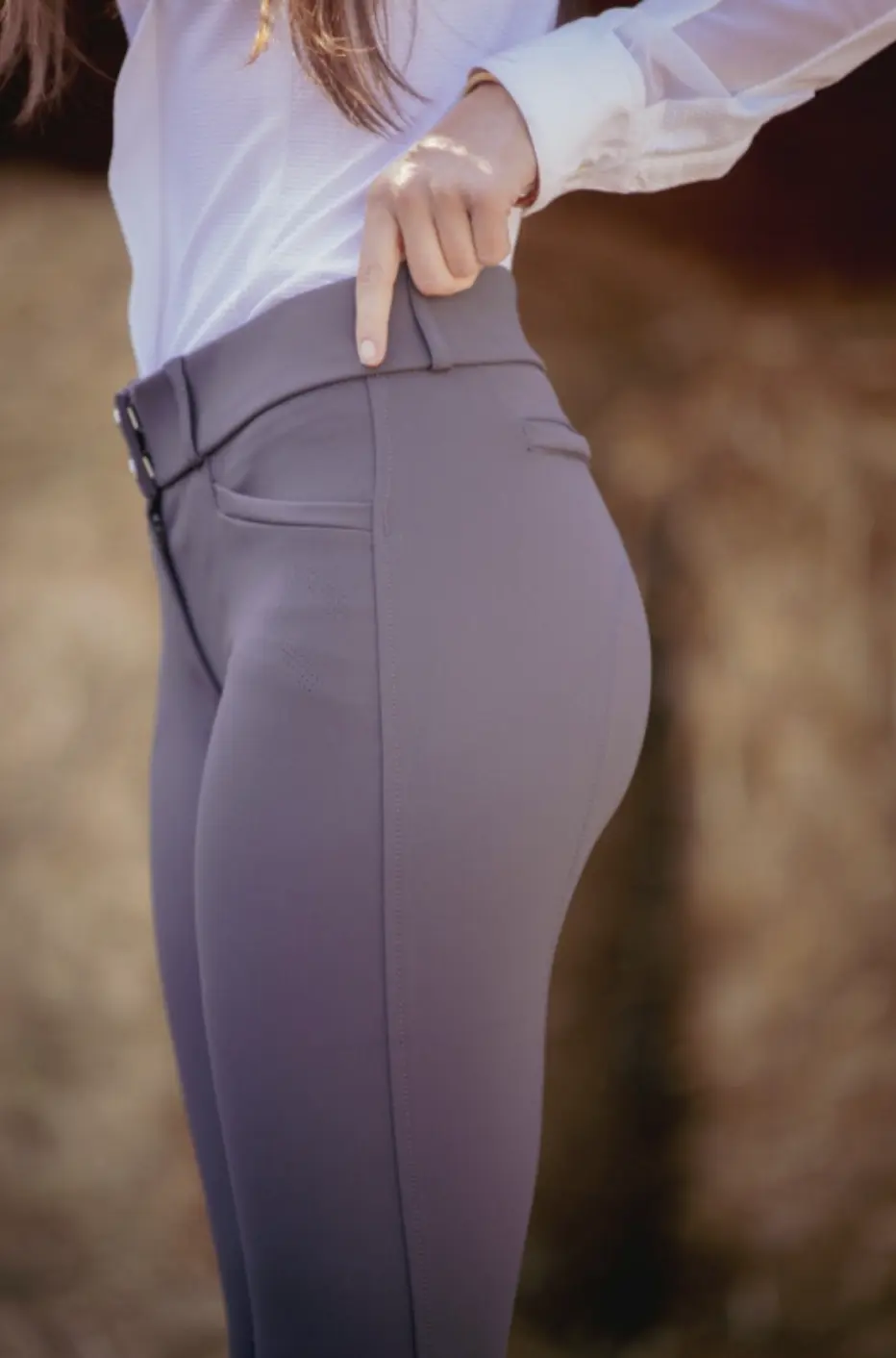 The newest in the Penelope line - the Majestic knee grip breech is an incredibly comfortable four-way stretch breech that offers a crisp, clean and modern silhouette in the saddle and beyond. With a mid-rise, wide waist band nice flat front with trimmed pockets. The back features lay flat welt pockets. This breech is engineered for performance in the saddle and light, cool comfort. It offers a close yet stretchy "second skin" fit that literally feels weightless.