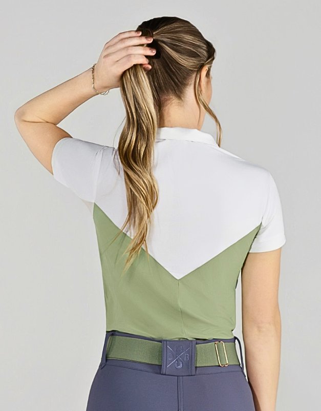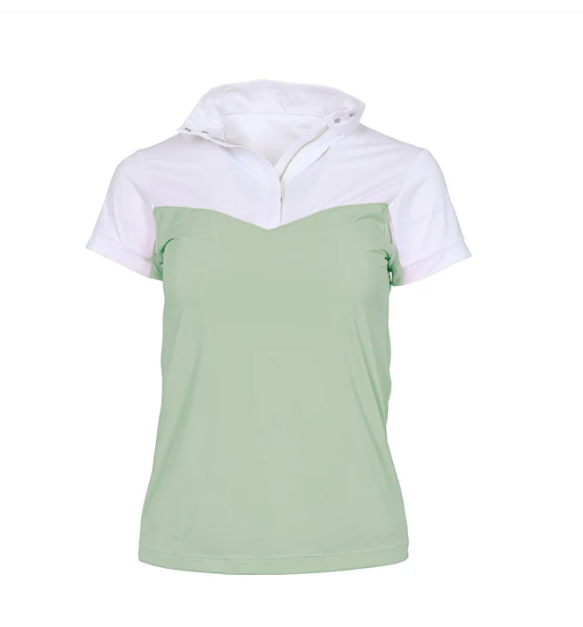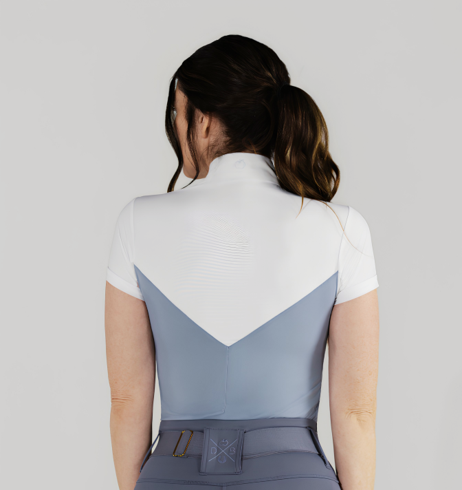 Thoughtfully constructed so only white is visible when your jacket is on, this top blends show-day formality with the cooling, ice-feel fabric and flattering color block design you'll love. Mesh underarms add breathability without compromising elegance, while the soft cuff finishes the look with comfort and simplicity.
