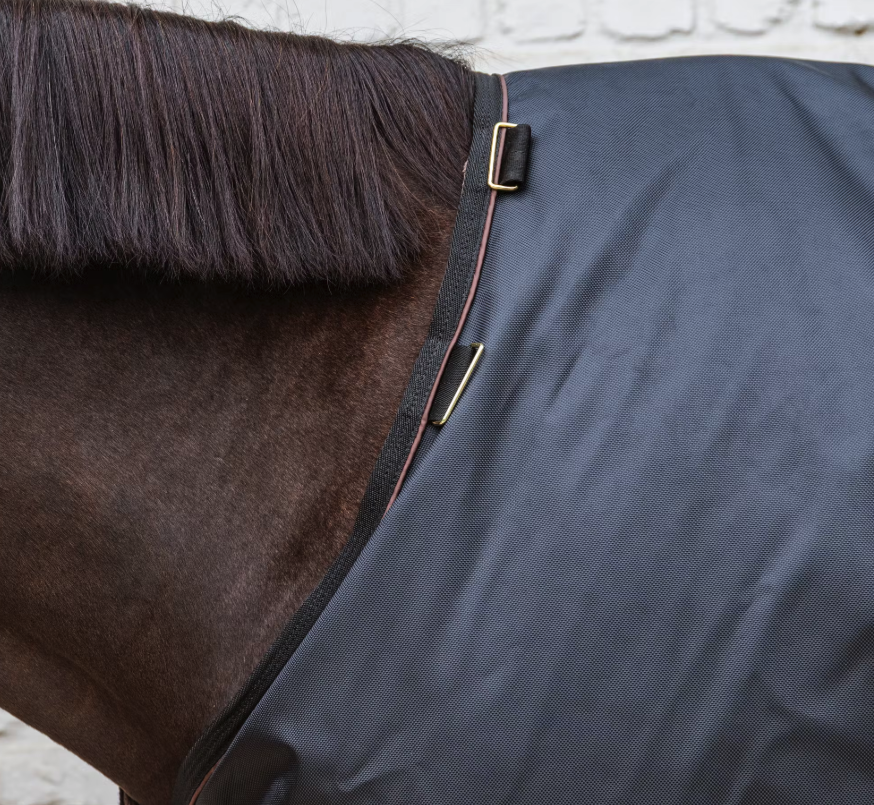 The waterproof pro has a 1680D outside fabric in a canvas look. This polyester outside is super strong, durable, and dirt-repellent. Thanks to the PU waterproof coating (ISO 10.000mm), a dry horse is guaranteed. The inside of the Turnout Rug All Weather Waterproof Pro is lined with our signature vegan rabbit skin. This prevents rubbing marks and works as an extra isolating as it traps and retains the horseās body heat.