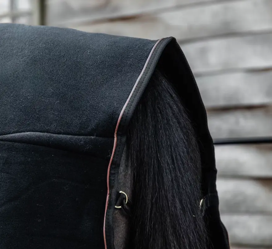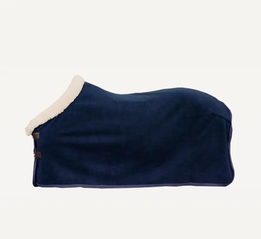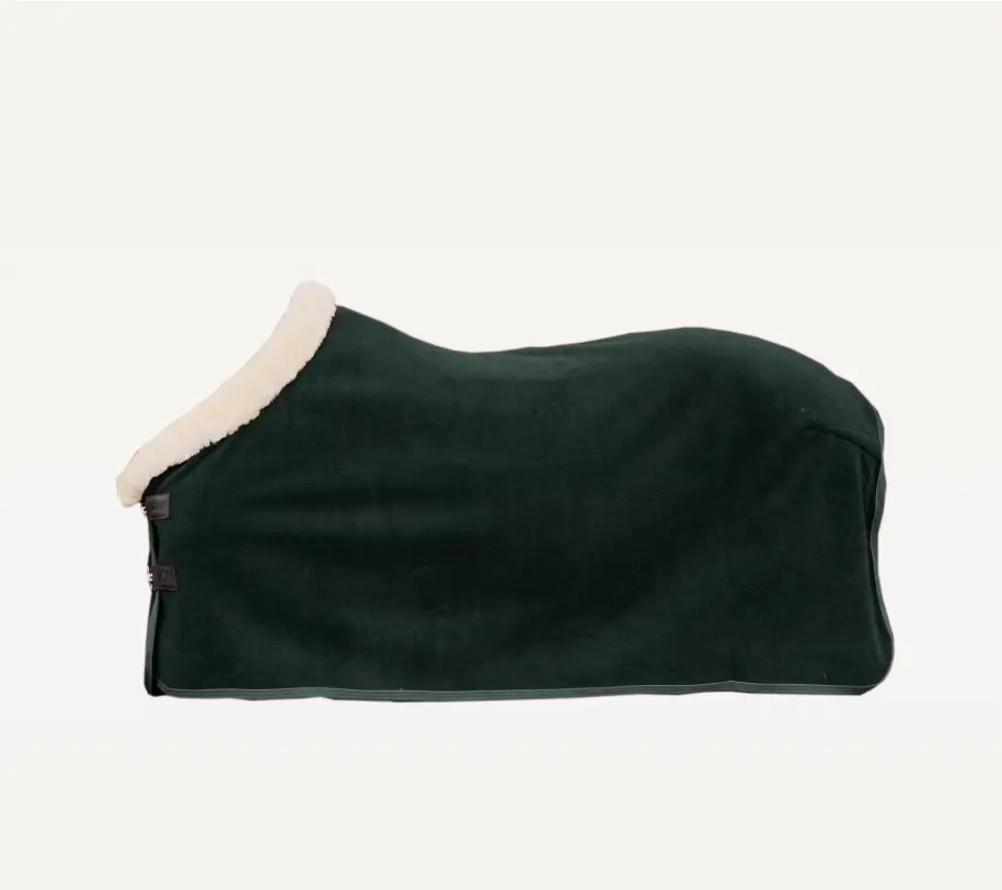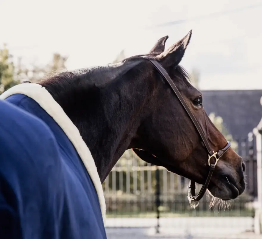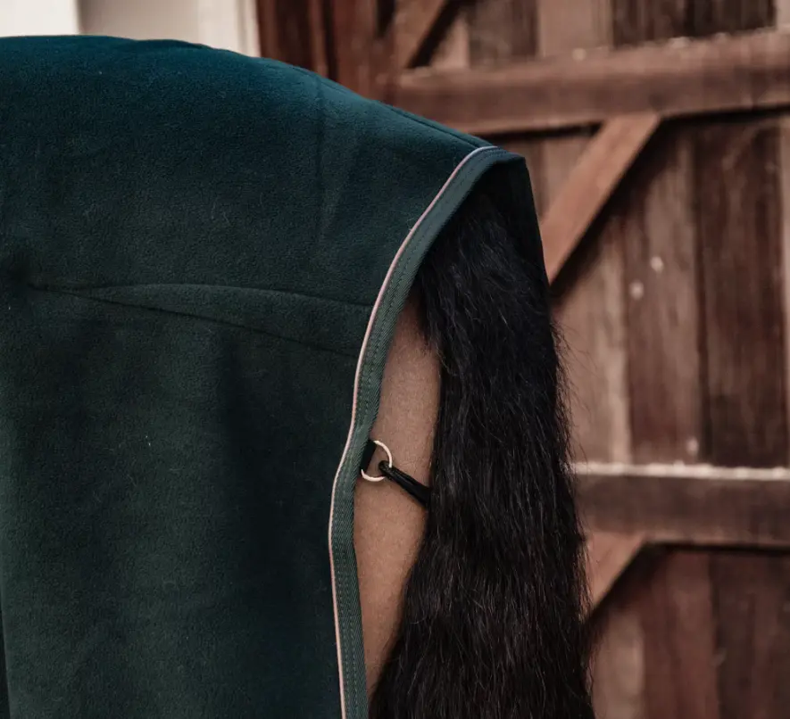 Fabric & materials The rug is highly absorbent and quickly wicks away sweat or water. The entire neck and chest are covered with vegan sheepskin, which not only provides warmth but also adds comfort. The rug is finished with vegan leather piping and elegant front closures.Shape & size The Kentucky Fleece Show Rug Heavy is thoughtfully designed with two internal detachable surcingles equipped with clips, making it adaptable for different uses, including as a show rug. This flexibility allows for a custom fit tailored to the specific needs of your horse, ensuring the rug stays securely in place without shifting.Care guide Maintaining this rug is straightforward: it is machine washable at a gentle 30° cycle to preserve its fibers and detailing. To ensure longevity and performance, avoid using a dryer.
