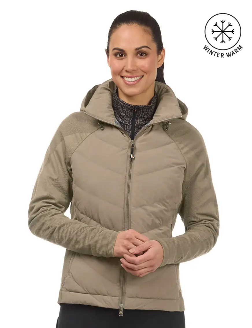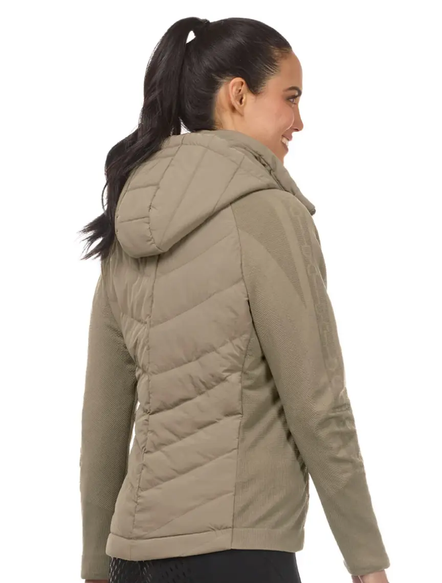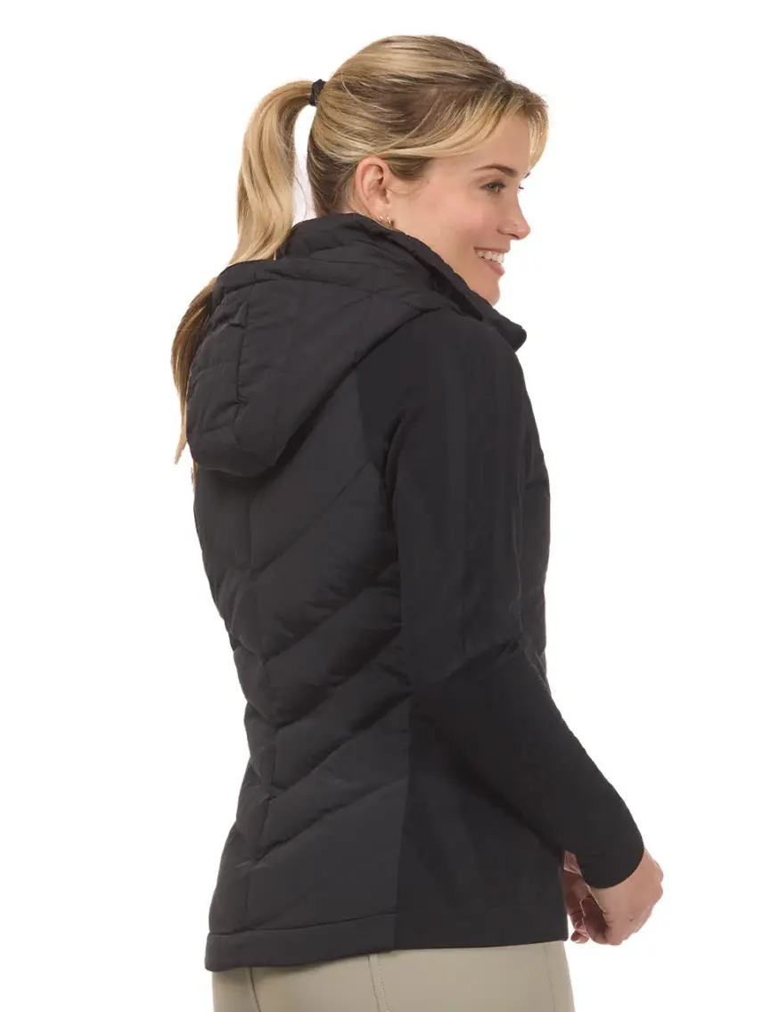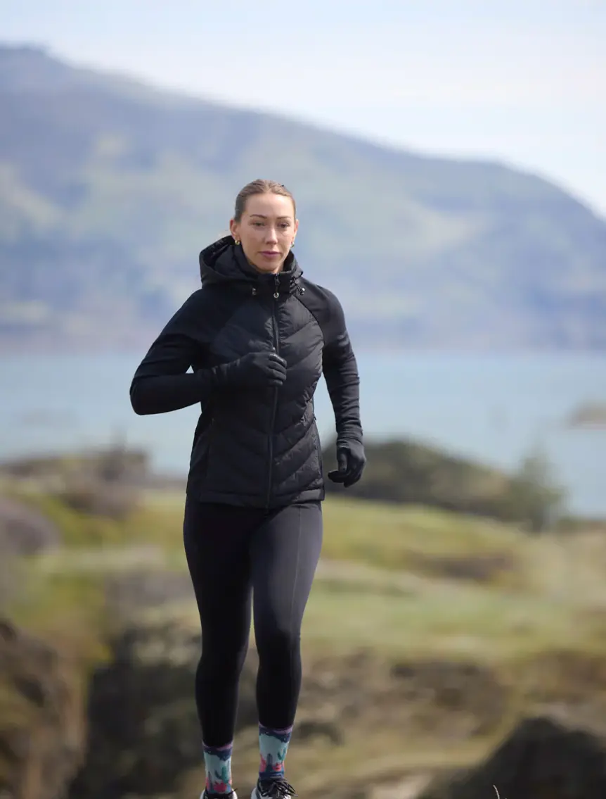 Lightweight insulation meets seamless stretch panels and sleeves for unrestricted freedom of movement. The thermal-reflective lining retains body heat to keep your core cozy, while ergonomic raglan sleeves and dynamic seams create a flattering, functional fit. A removable insulated hood adds extra warmth when the temperature drops. Sleek and versatile, it’s ready for everything from active days outside to casual wear around town.