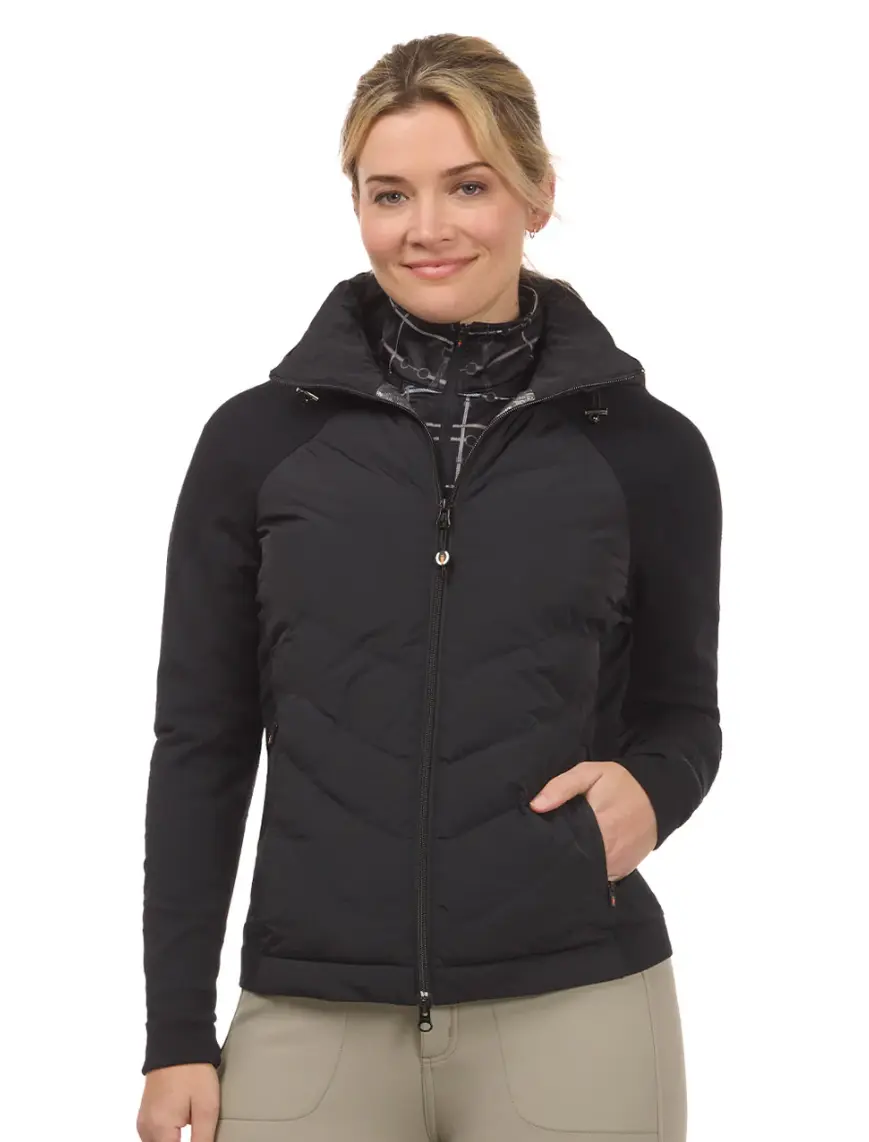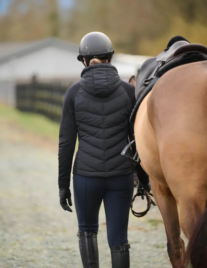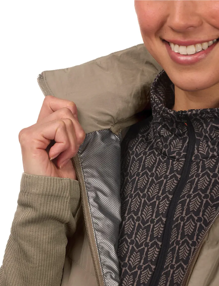 Lightweight insulation meets seamless stretch panels and sleeves for unrestricted freedom of movement. The thermal-reflective lining retains body heat to keep your core cozy, while ergonomic raglan sleeves and dynamic seams create a flattering, functional fit. A removable insulated hood adds extra warmth when the temperature drops. Sleek and versatile, it’s ready for everything from active days outside to casual wear around town.