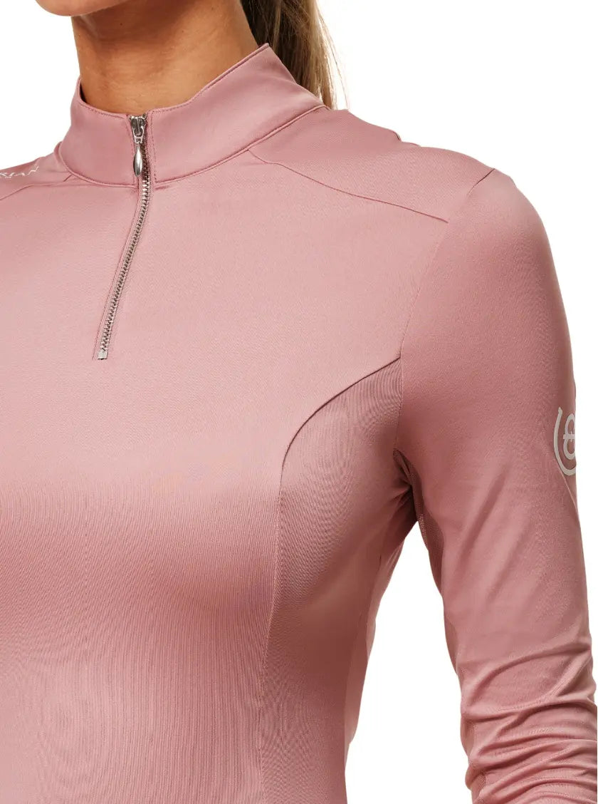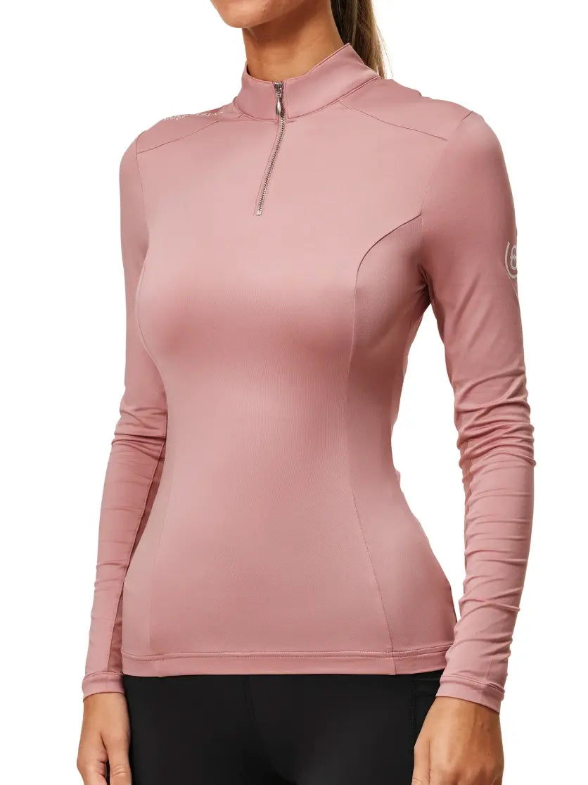 This ultimate super light Equestrian Stockholm sun shirt for summer days comes in an elegant light pink design with a silver zipper at the front. Created with a breathable mesh panel and ultra-thin material that breathes well and has a cooling effect. The special thing about the top is that it also has an integrated UV protection factor of 35. It protects you from the sun and with its ice cool touch, it cools your skin temperature by 1-2ºC. The material contains recycled coffee grounds, which functions as an odor control. The odor control function keeps your top fresh longer, which could mean fewer washes. Better for the top, better for the planet.